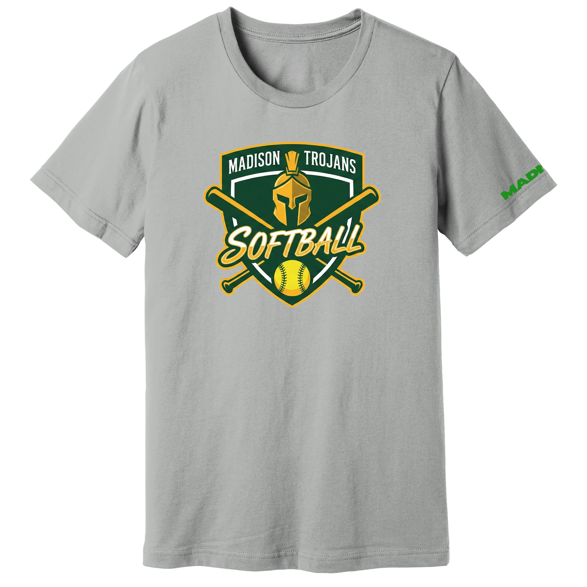 Dallas athletics' most iconic brands. Dallas Madison is well known for its striking Trojan logo. We positioned the Trojan head between two bats so that it resembled a Trojan engaged in combat with his swords. To make the Trojan stand out and demonstrate our warrior stance, we positioned him in the middle. Wear your "TrojanBall" t-shirt to flaunt your fashion sense and enthusiasm at the game.
