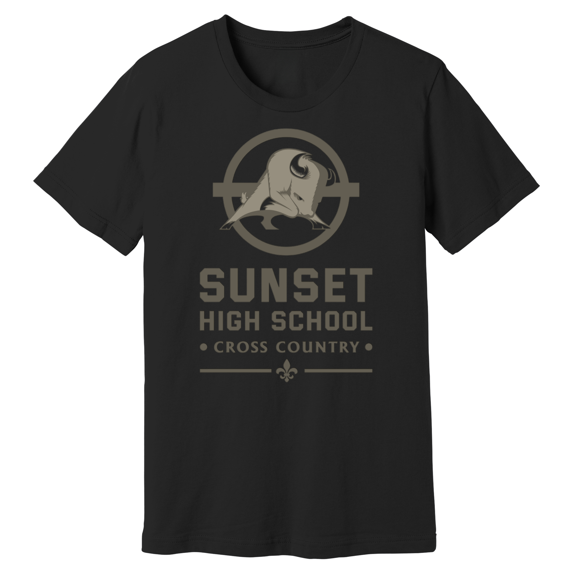 Oak Cliff's second-oldest high school and Dallas' sixth-oldest. The school has been designated a historical landmark since 2014, and the Bison logo is well-known throughout the community. In this design, we placed the bison in what looks to be a "Bisonseye" We wrote the name of the school underneath. During the race, show off your enthusiasm and sense of style by donning this "One" cross-country t-shirt.